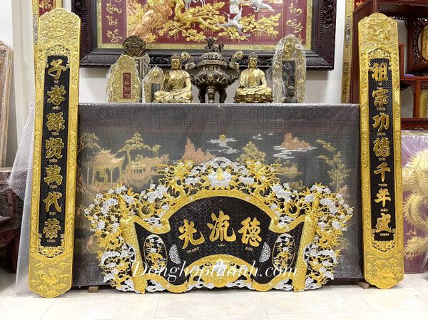 Bộ cuốn thư câu đối Đức Lưu Quang thiếp vàng bạc, kích thước 1m55