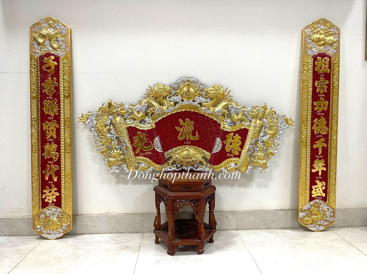 Bộ cuốn thư câu đối Đức Lưu Quang thiếp vàng, bạc, kích thước 1,33m