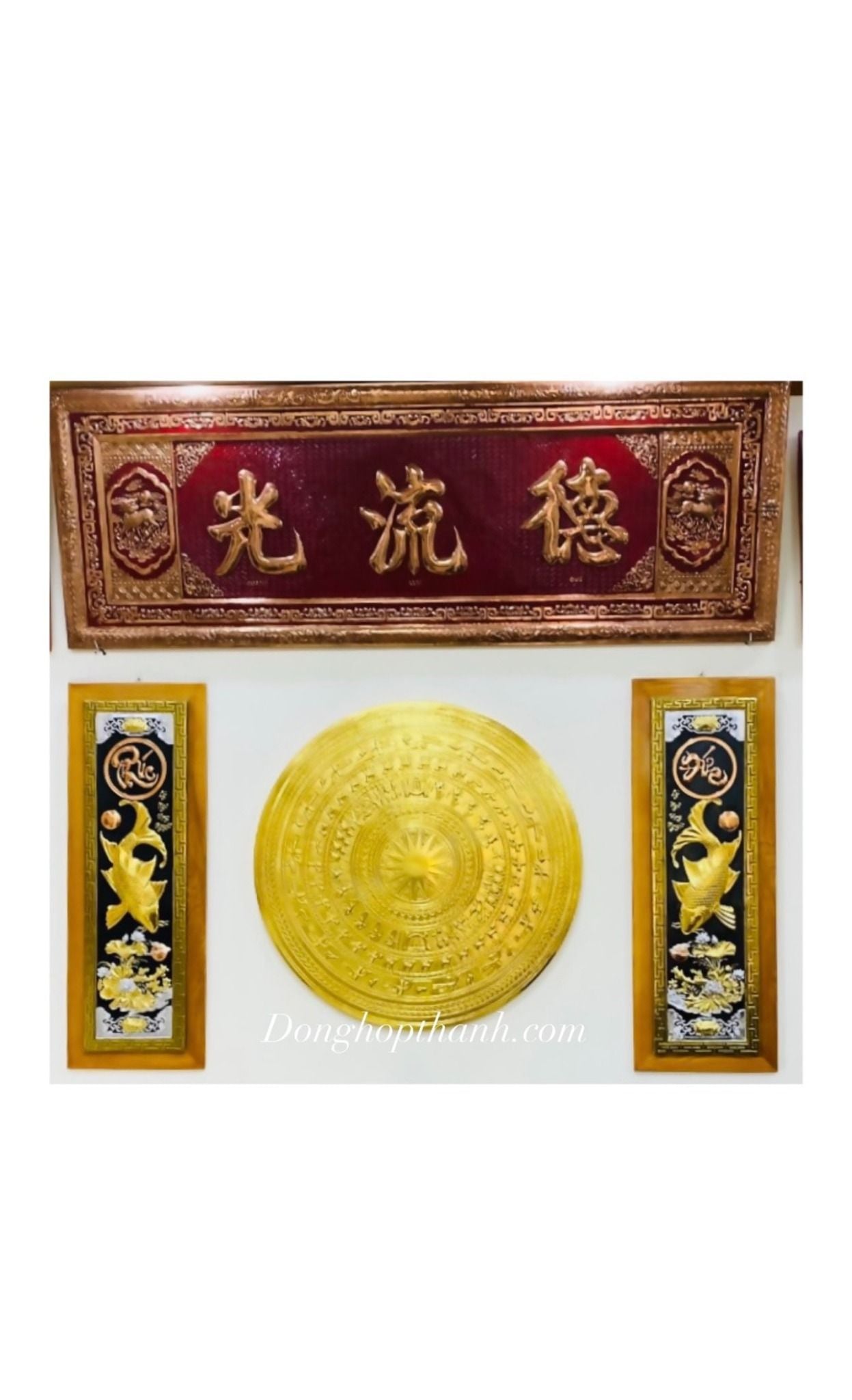 Bộ Đại tự được xưởng đồ đồng Hợp Thành gia công chế tác, chạm khảm tất cả đều được làm thủ công bằng tay mỗi sản phẩm thực sự là một tác phẩm đồng mỹ nghệ tinh xảo đến mức cao nhất, với những đường nét sắc sảo, có giá trị thực sự cao của những nghệ nhân, những người thợ tài hoa từ làng nghề chạm bạc Đồng Xâm. Cùng với đó là chất liệu đồng nhập khẩu Hàn Quốc nguyên tấm, độ dày 8 rem mang đến cho bộ cuốn thư câu đối một sự hoàn hảo và chất lượng.