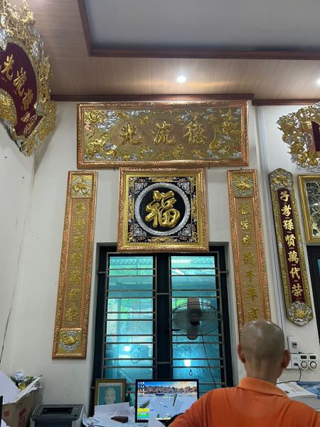 Hoành phi, cuốn thư, đại tự treo phòng thờ, bàn thờ gia tiên thường đi kèm với đôi câu đối. Đôi câu đối có thể treo 2 bên tường hoặc ốp 2 bên cột của gian thờ.