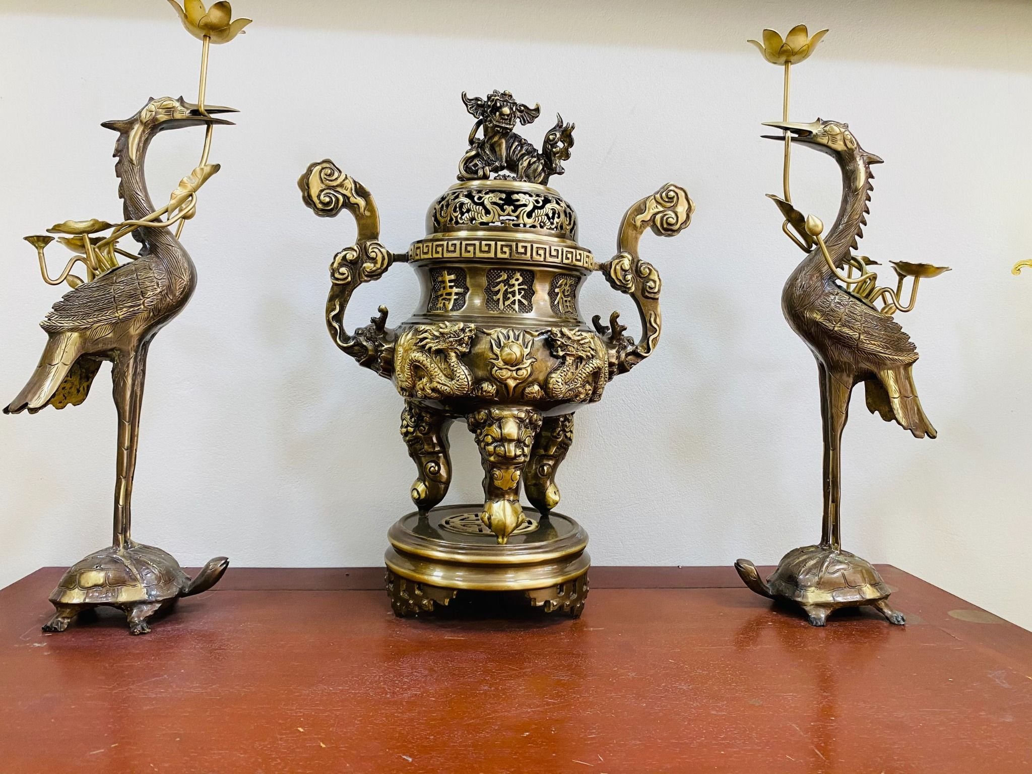 Bộ đỉnh tam sự Long Phụng màu giả cổ - Kích thước 50 cm
