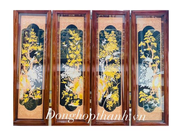 Bộ tranh đồng tứ quý, dát vàng bạc - Kích thước 176cm X 61cm