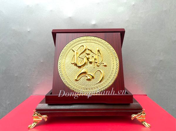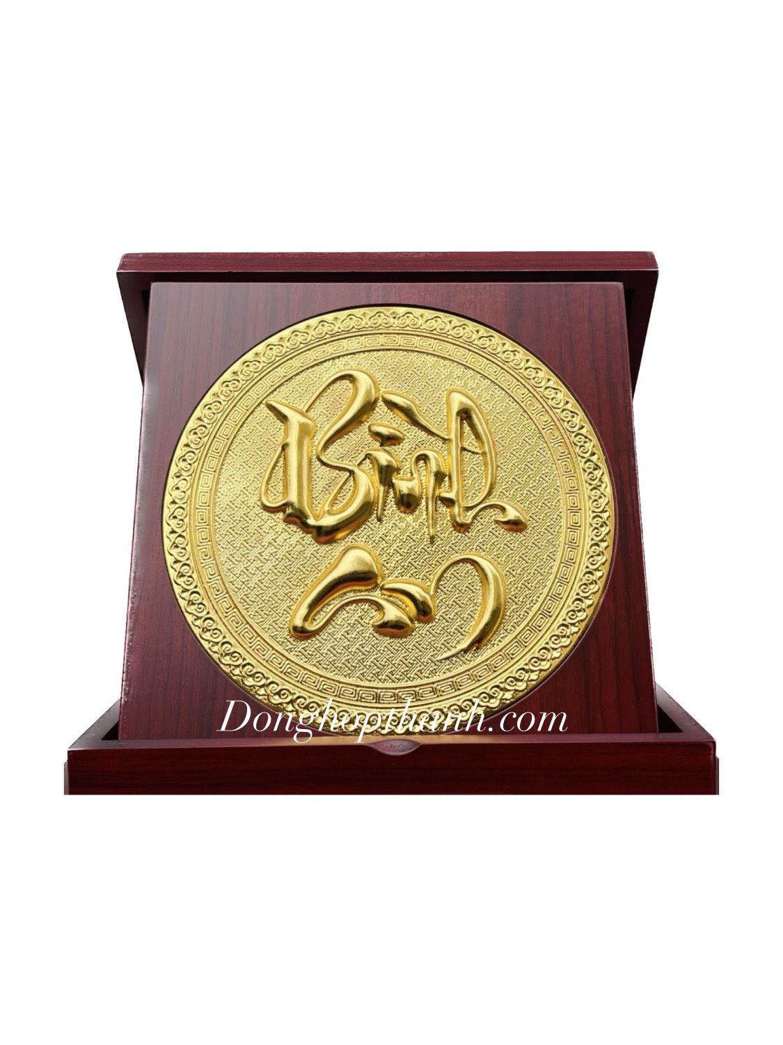 Quà tặng chữ Bình An mạ vàng 24k - Đường kính 20cm