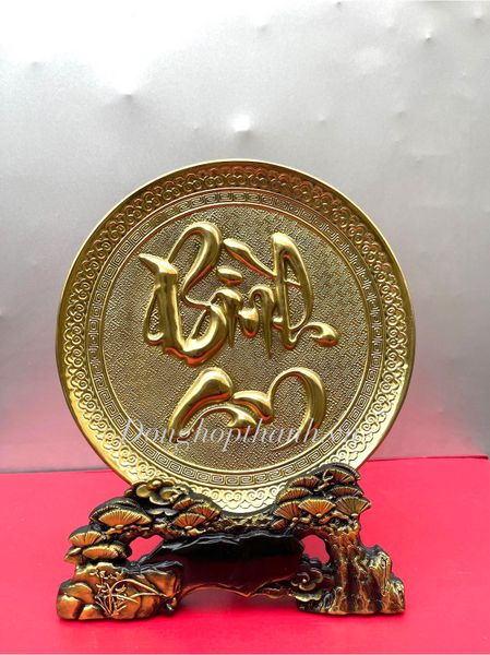 Quà tặng tranh đĩa đồng chữ bình an mạ vàng 24k - kích thước 20 cm