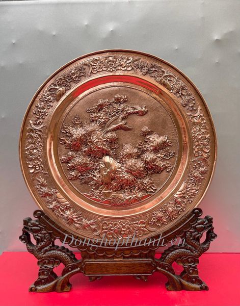 Quà tặng tranh đĩa đồng - Hoa mẫu đơn- Đường Kính 35cm; Tổng Chiều Cao 41cm