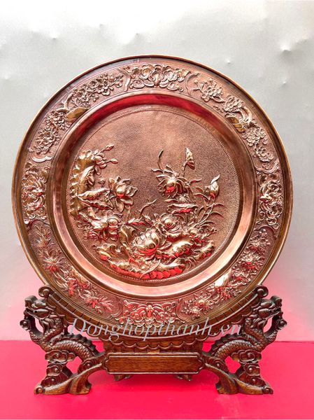 Quà tặng tranh đĩa đồng -Hoa sen - Đường Kính 35cm; Tổng Chiều Cao 41cm