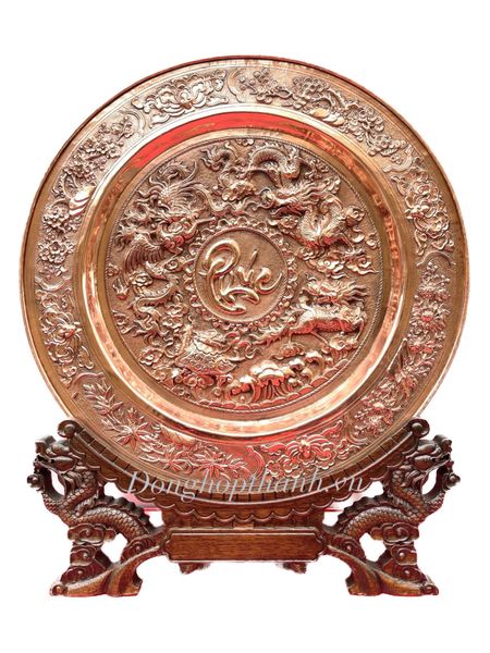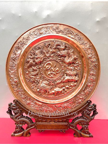 Quà tặng tranh đĩa đồng - tứ linh chầu phúc - Đường Kính 35cm; Tổng Chiều Cao 41cm