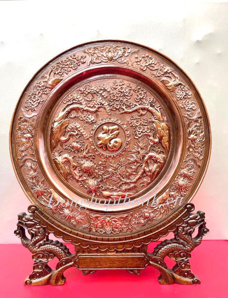 Quà tặng tranh đĩa đồng - Tứ quý bình an - Đường Kính 35cm; Tổng Chiều Cao 41cm