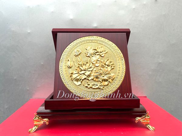 Đặc biệt Tranh đĩa hoa sen có chất liệu bằng đồng và được phủ lên bề mặt chất liệu vàng 24k càng mang cao giá trị bởi sắc vàng sang trọng, chế tác tinh xảo từng đường nét chi tiết và nó trường tồn mãi thời gian.
