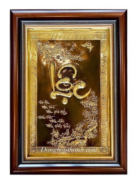 Tranh đồng chữ Lộc thư pháp mạ vàng 24k - Kích Thước 28cm - 38cm