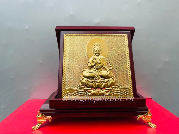 Tranh đồng Quan Âm Bồ tát mạ vàng 24k (24cm X 24cm)