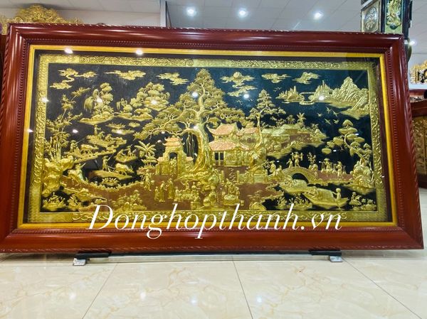 Tranh đồng quê bằng đồng vàng - kích thước 89cm x 173cm