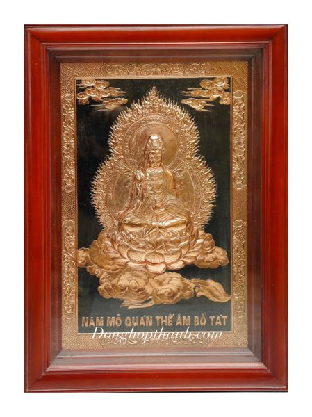 Tranh Phật Quan Thế Âm Bồ Tát bằng đồng đỏ - kích thước 38cm x 54cm