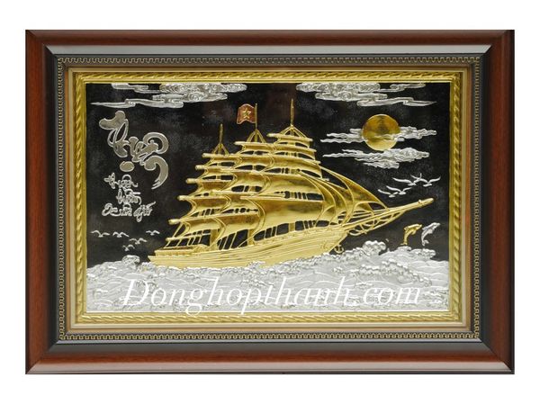 Tranh Thuận buồm xuôi gió dát vàng bạc -Kích Thước 50cm x 90cm